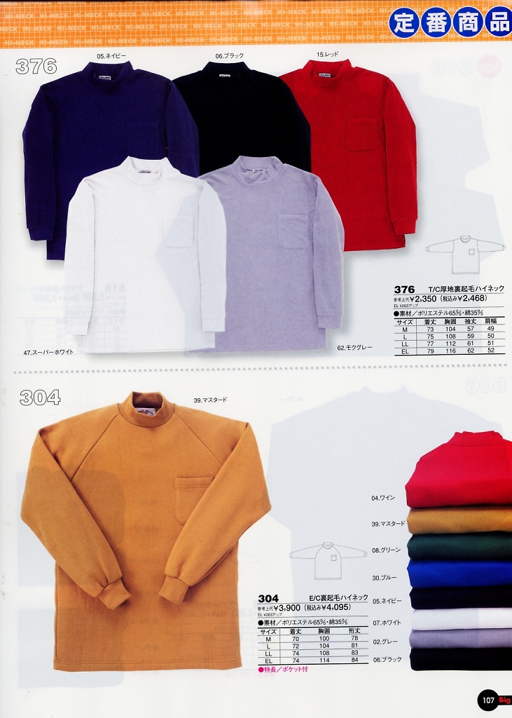 T/C厚地裏起毛ハイネック