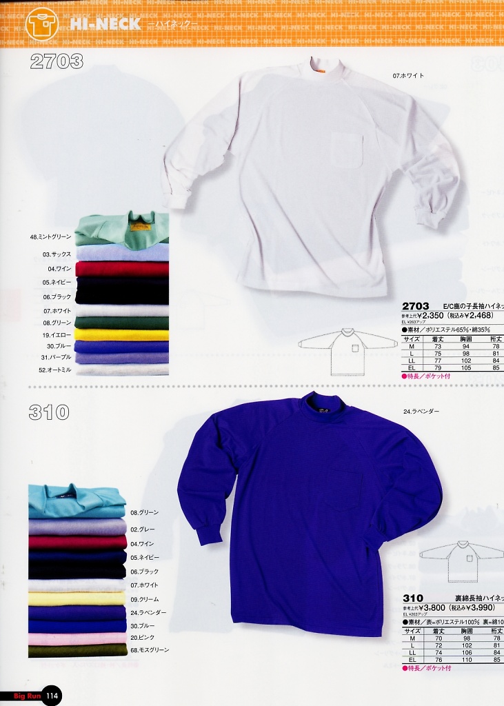 裏綿長袖ハイネック
