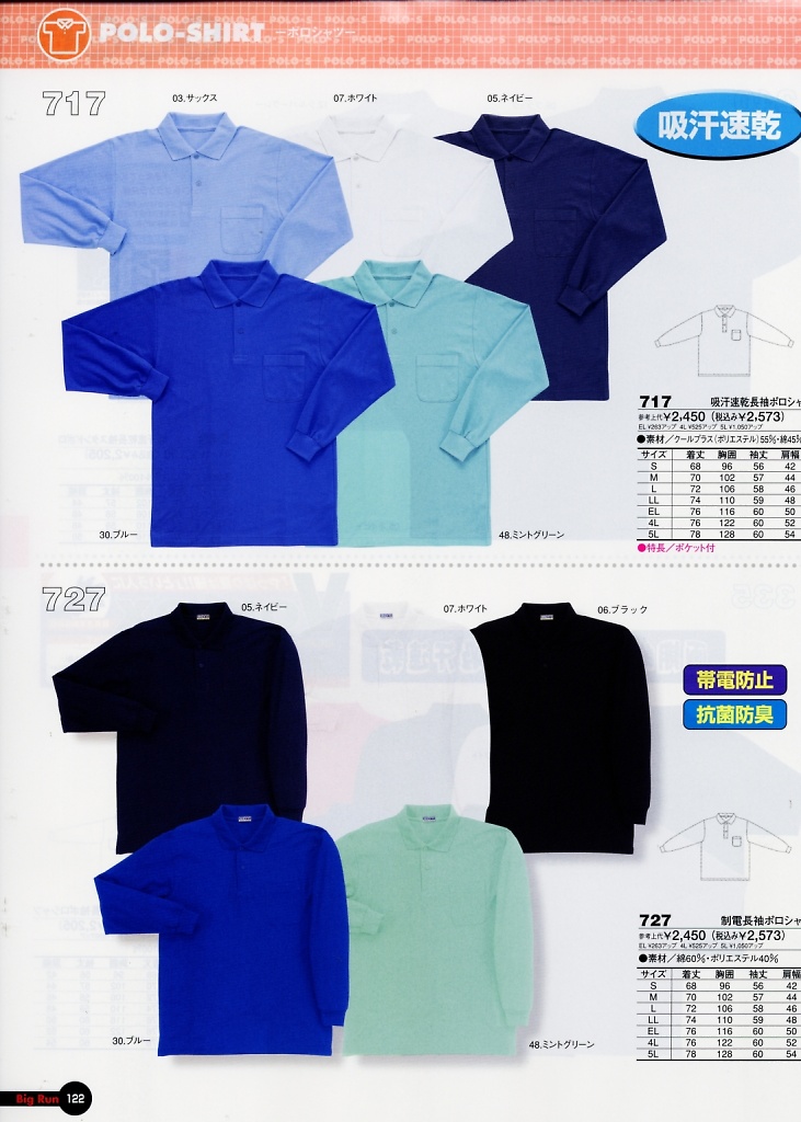 吸汗速乾長袖ポロシャツ