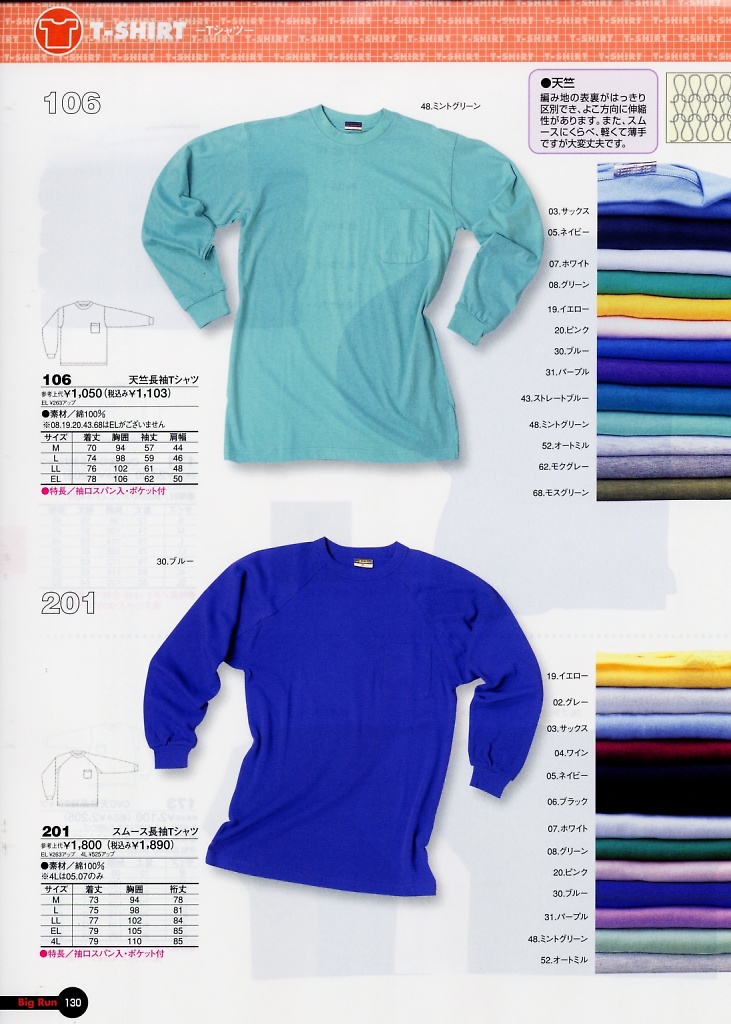 天竺長袖Tシャツ