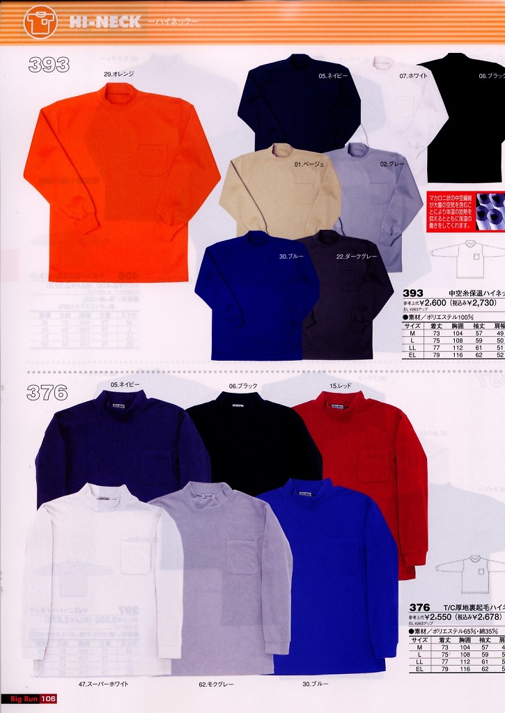 T/C厚地裏起毛ハイネック