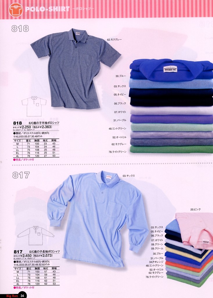 E/C鹿の子長袖ポロシャツ