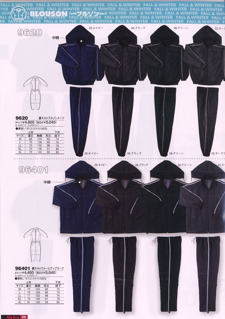 裏キルトブルゾンスーツ