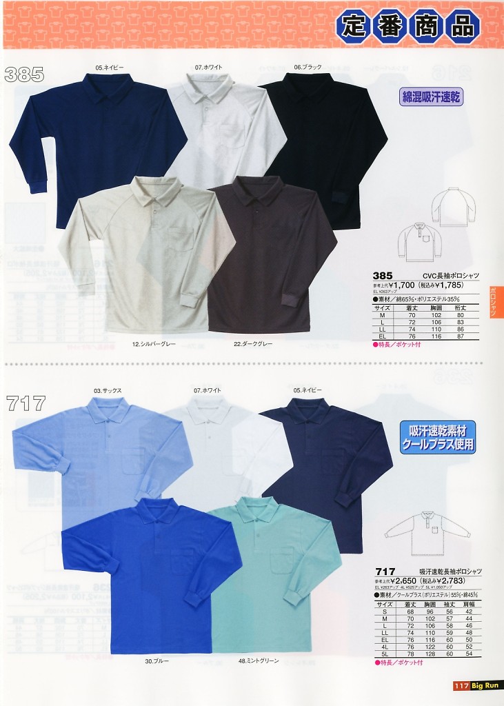 吸汗速乾長袖ポロシャツ