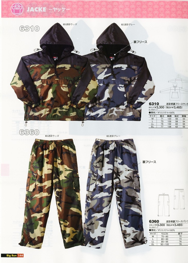 迷彩柄裏フリースヤッケ