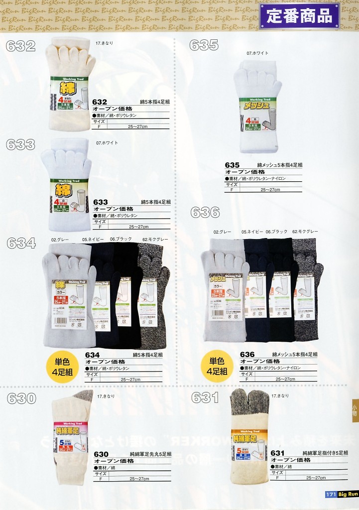 純綿軍足先丸5足組