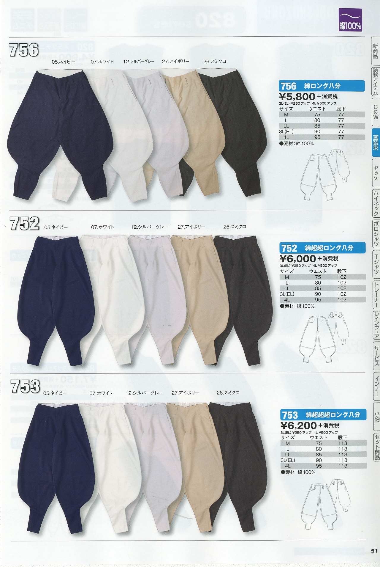 綿ロング八分 756