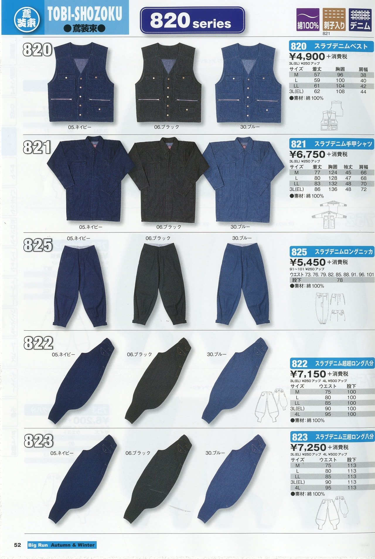 スラブデニムロングニッカ 825