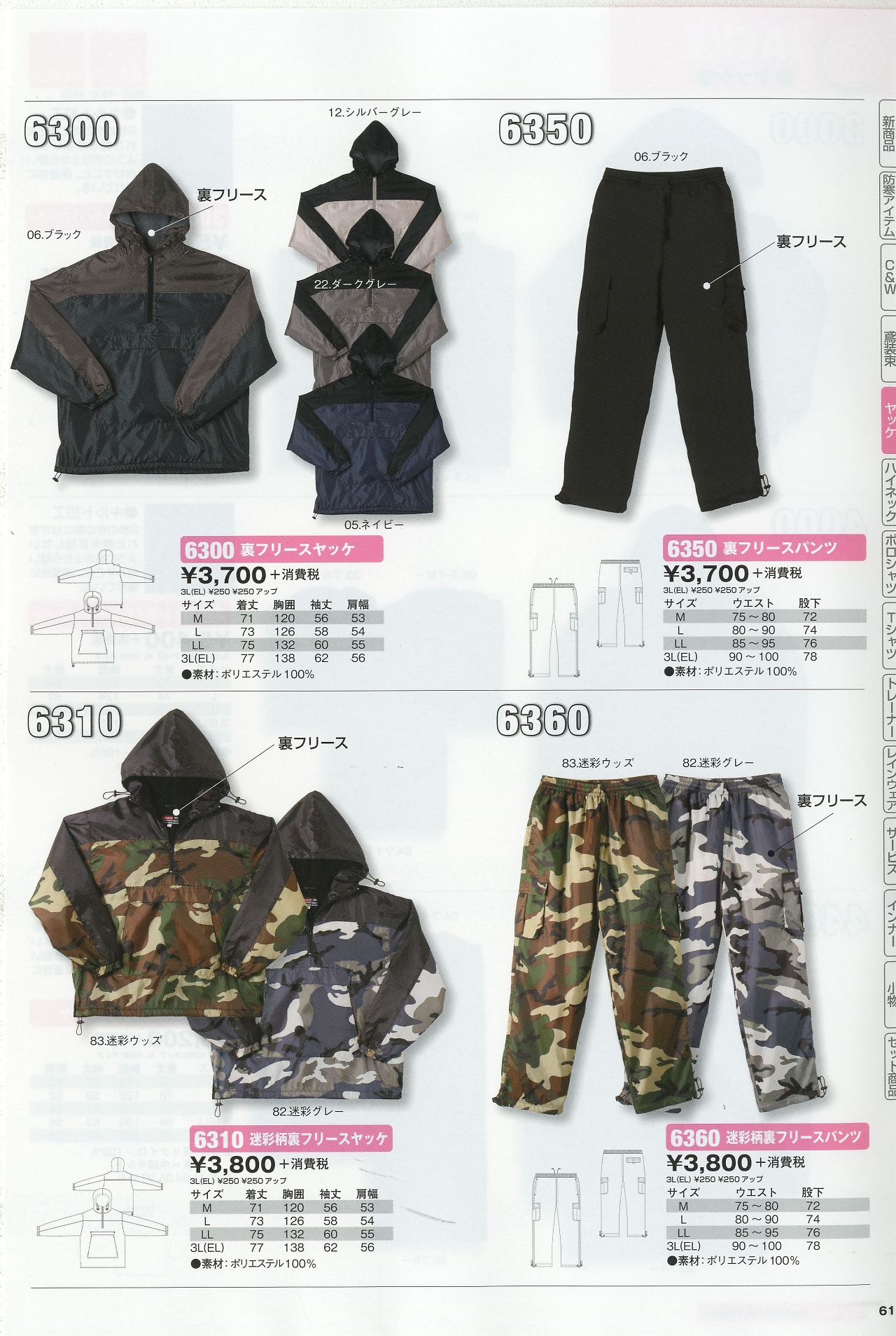 裏フリースヤッケ 6300