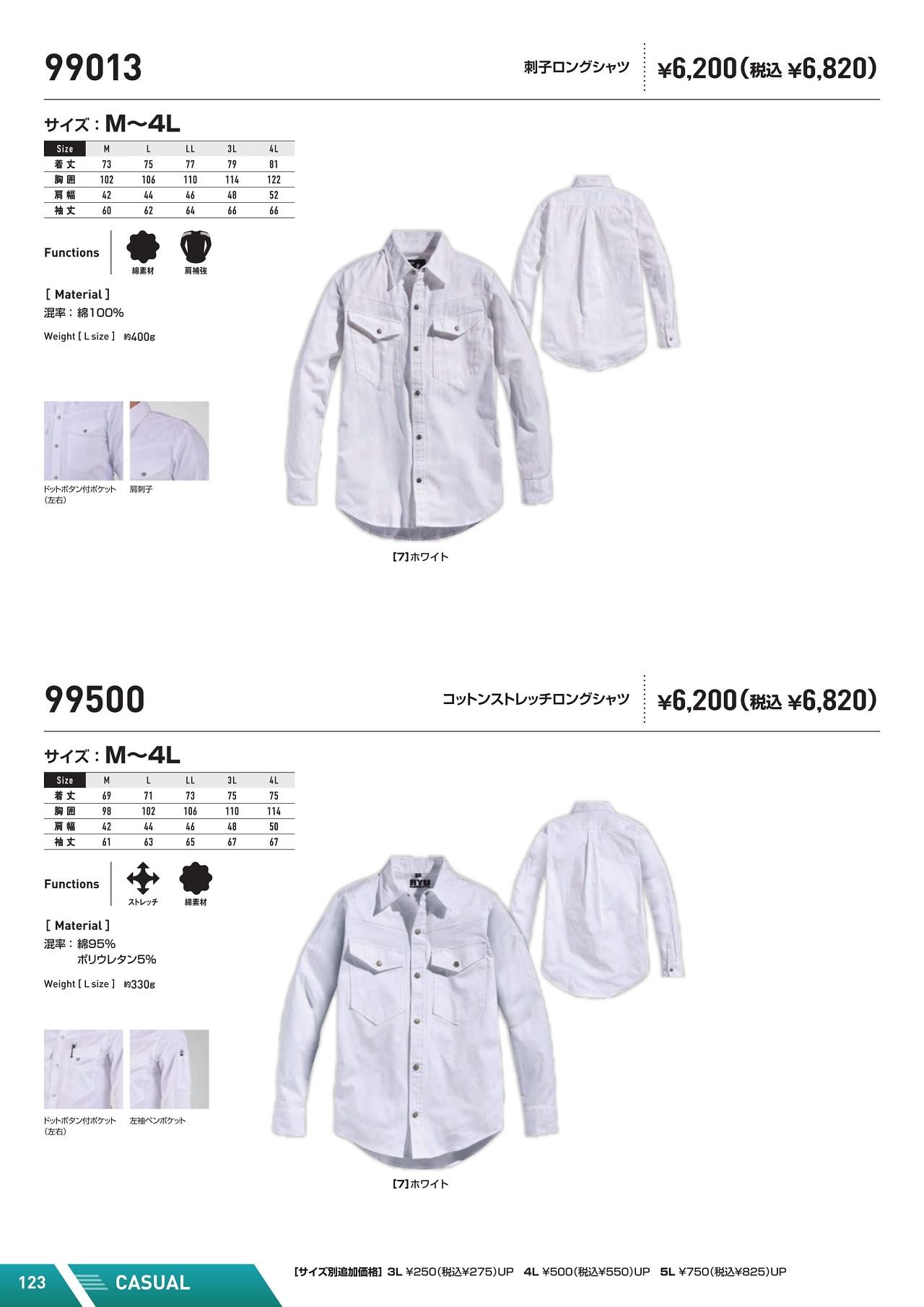 綿ストレッチ長袖シャツ 99500