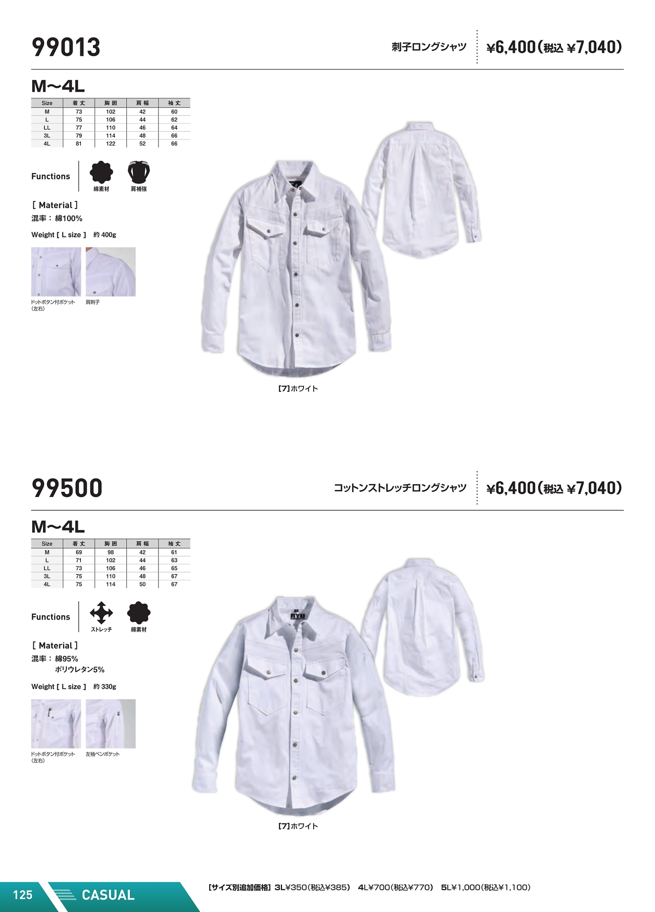 綿ストレッチ長袖シャツ 99500