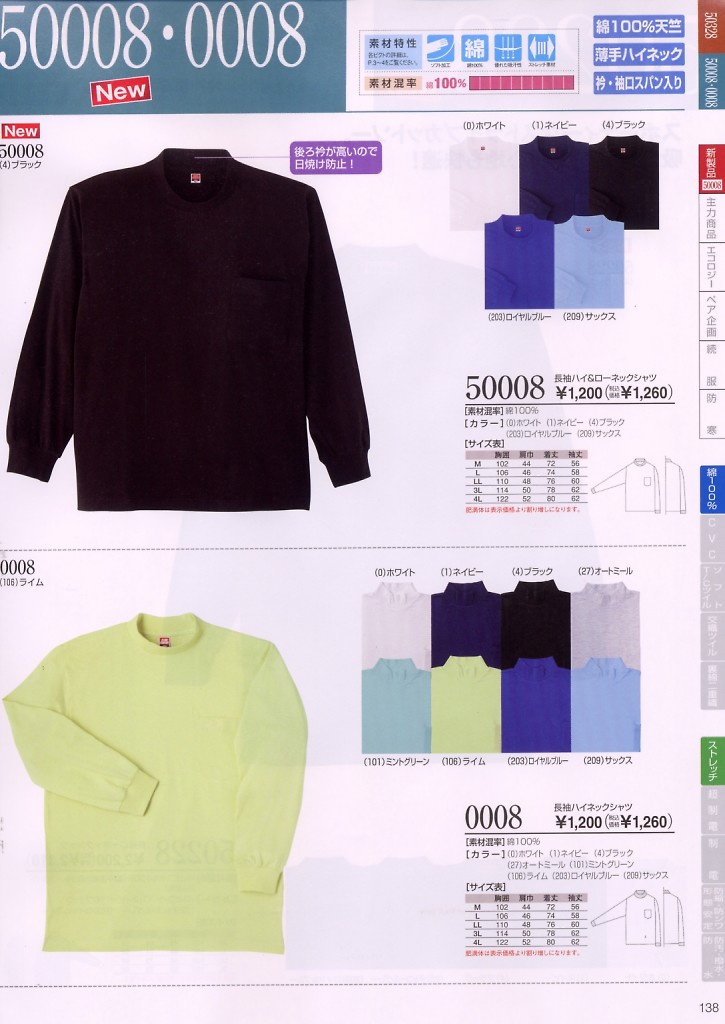 長袖ハイ&ローネック