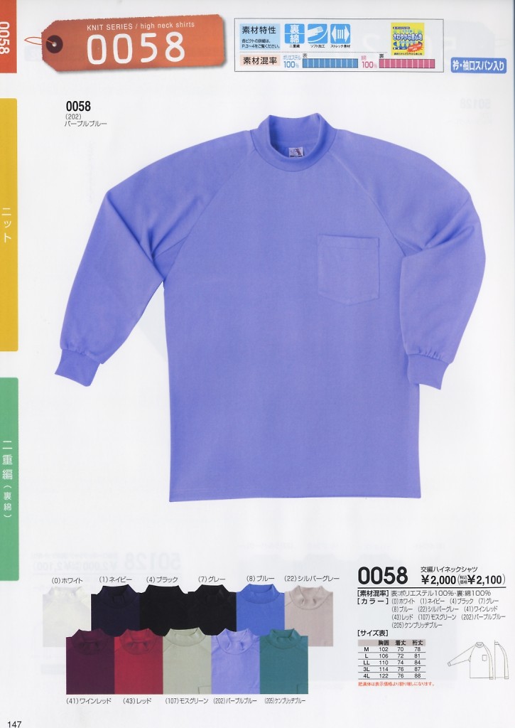 交編ハイネックシャツ
