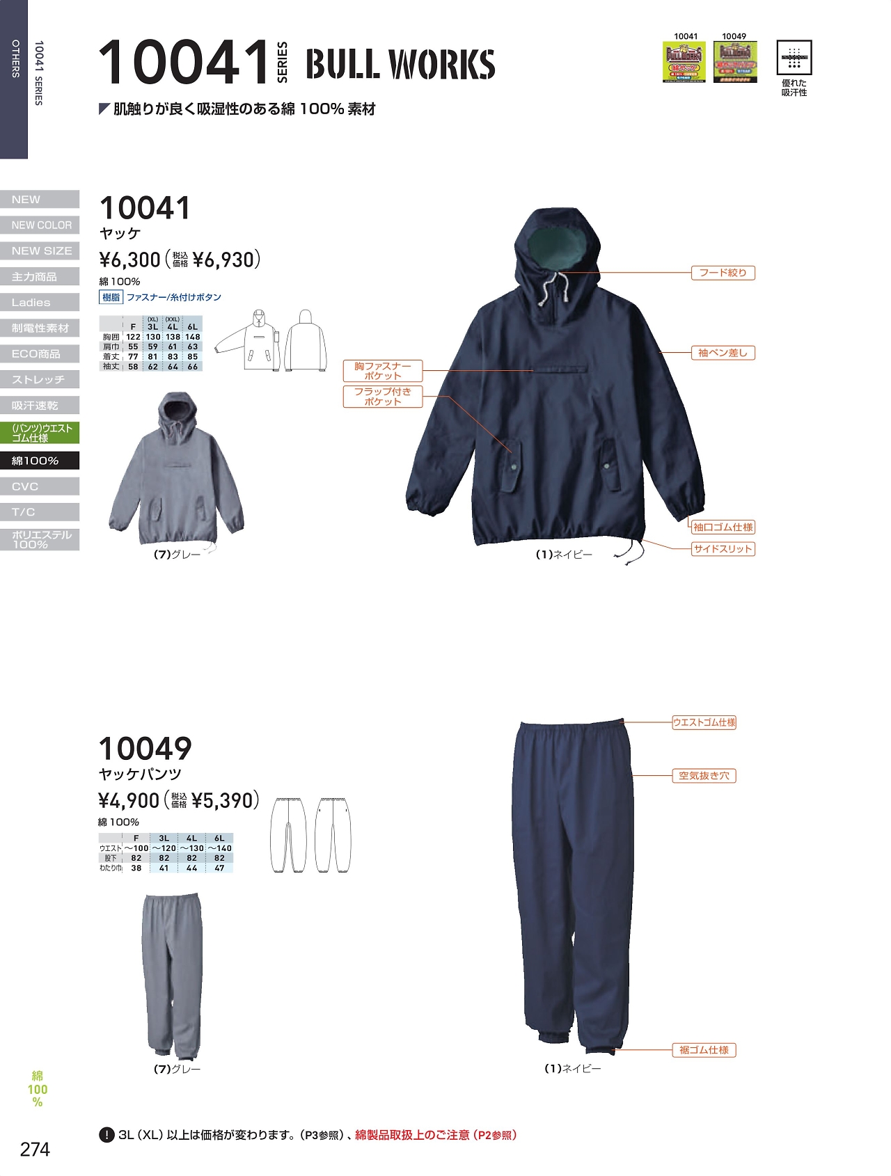 綿ヤッケパンツ 10049