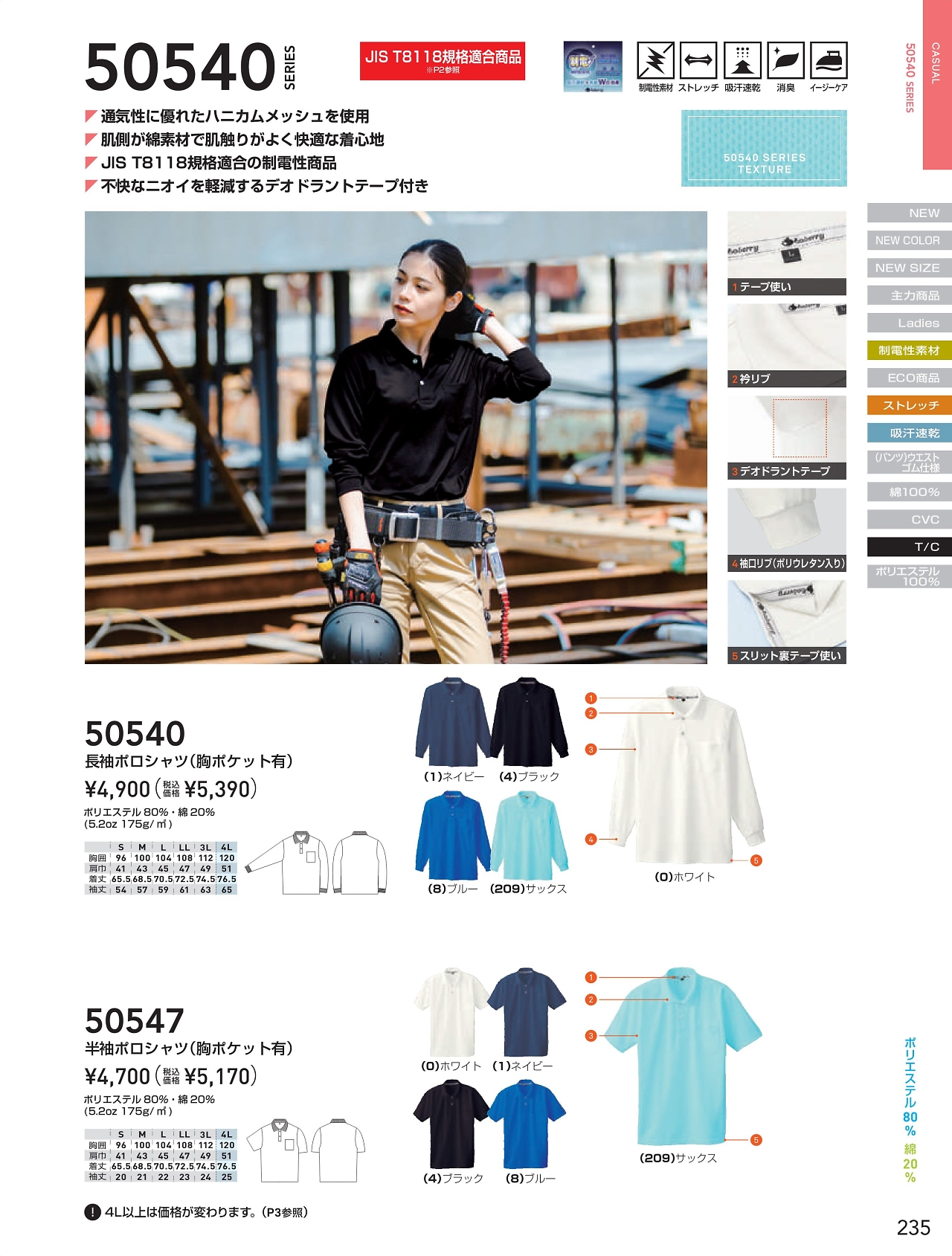 半袖静電ポロシャツ 50547