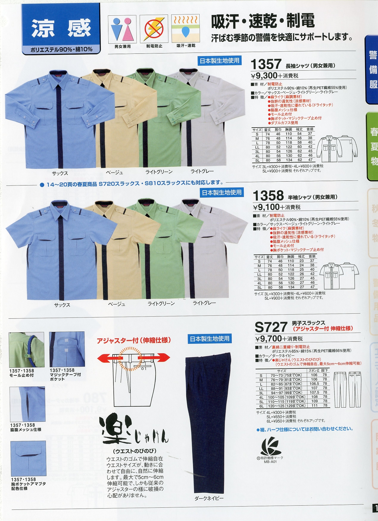 男子夏スラックス S727