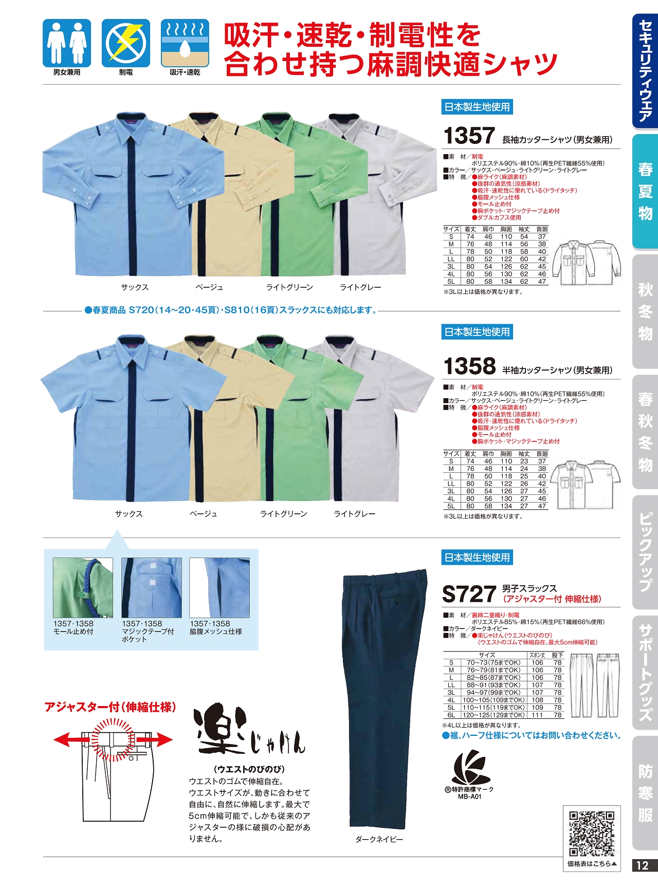 男子夏スラックス S727