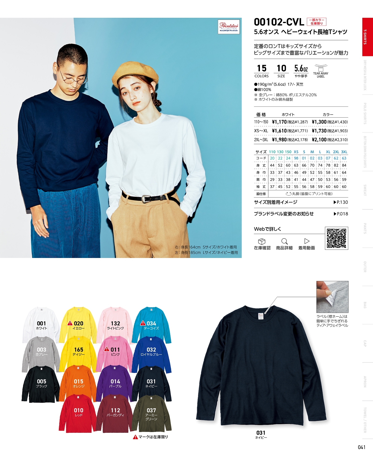 ヘビーウエイト長袖Tシャツカラー2XL-3XL