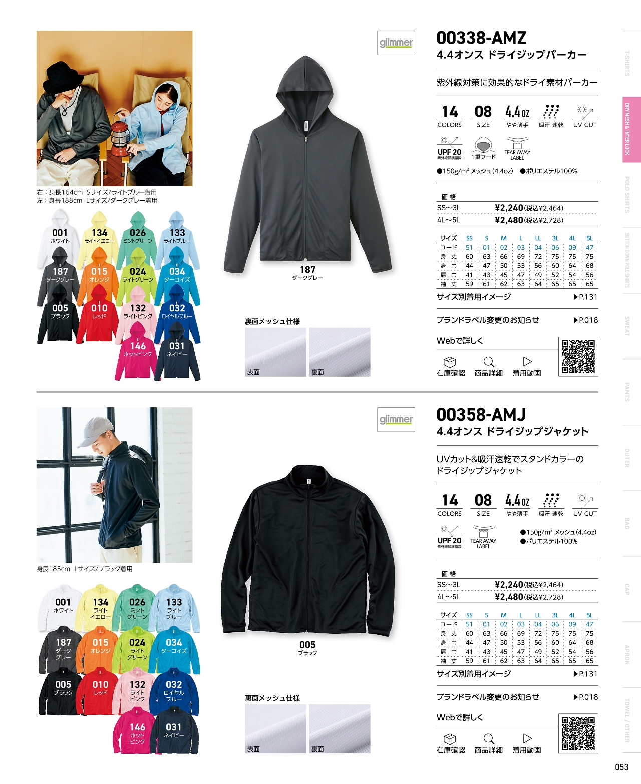 ドライジップジャケットSS-3L 358AMJ-SS-3L