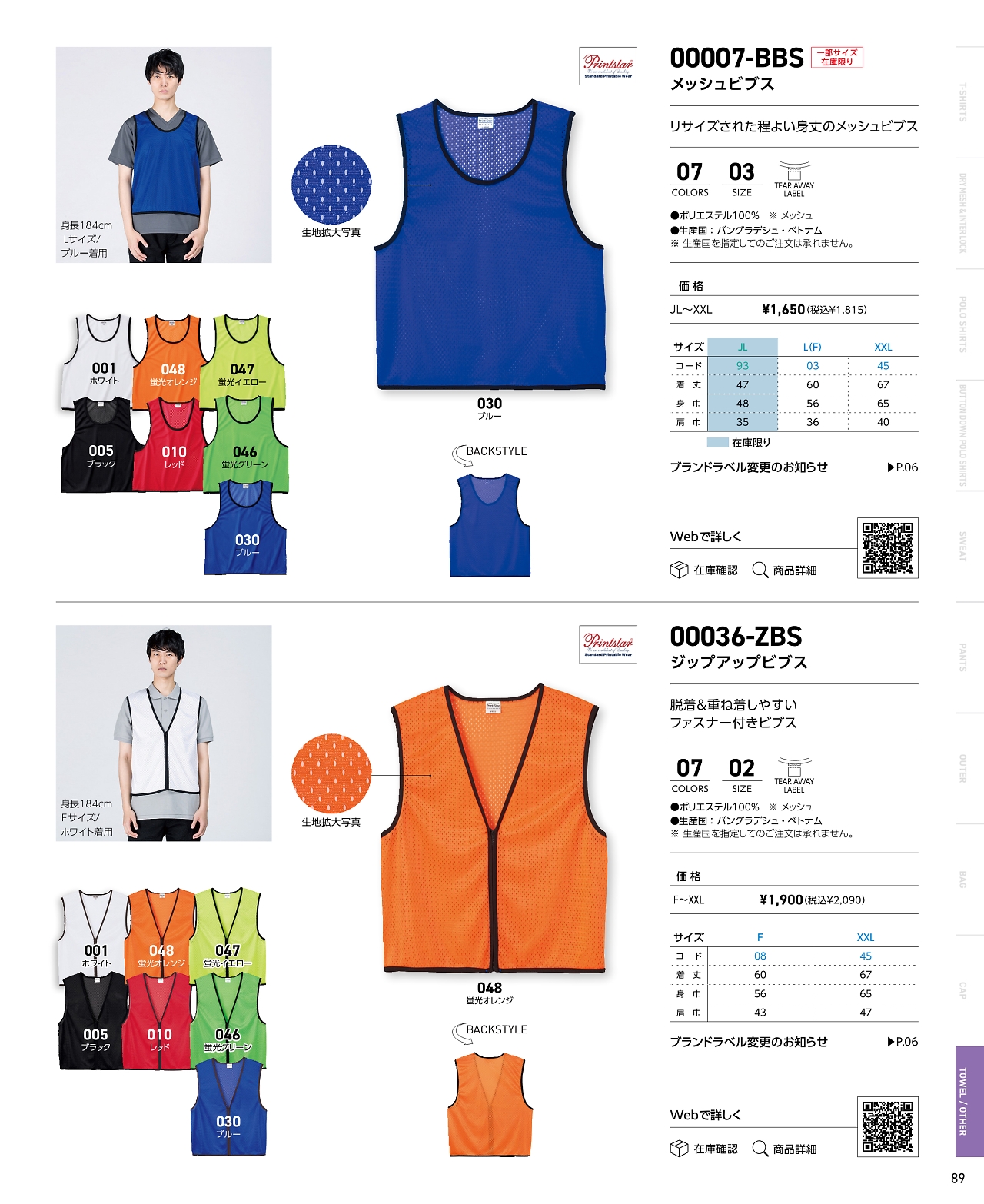 ジップアップビブス