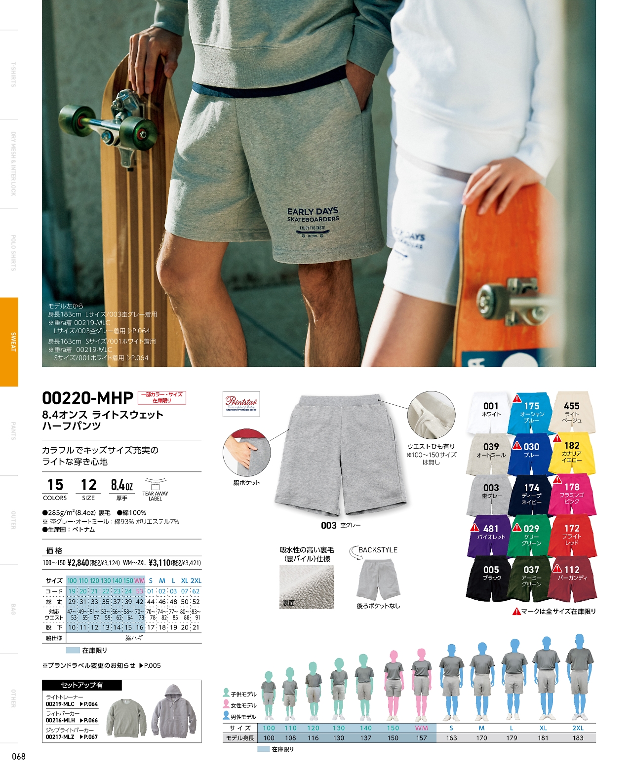 スウェットハーフパンツWM-2XL 220MHP-WM-2XL