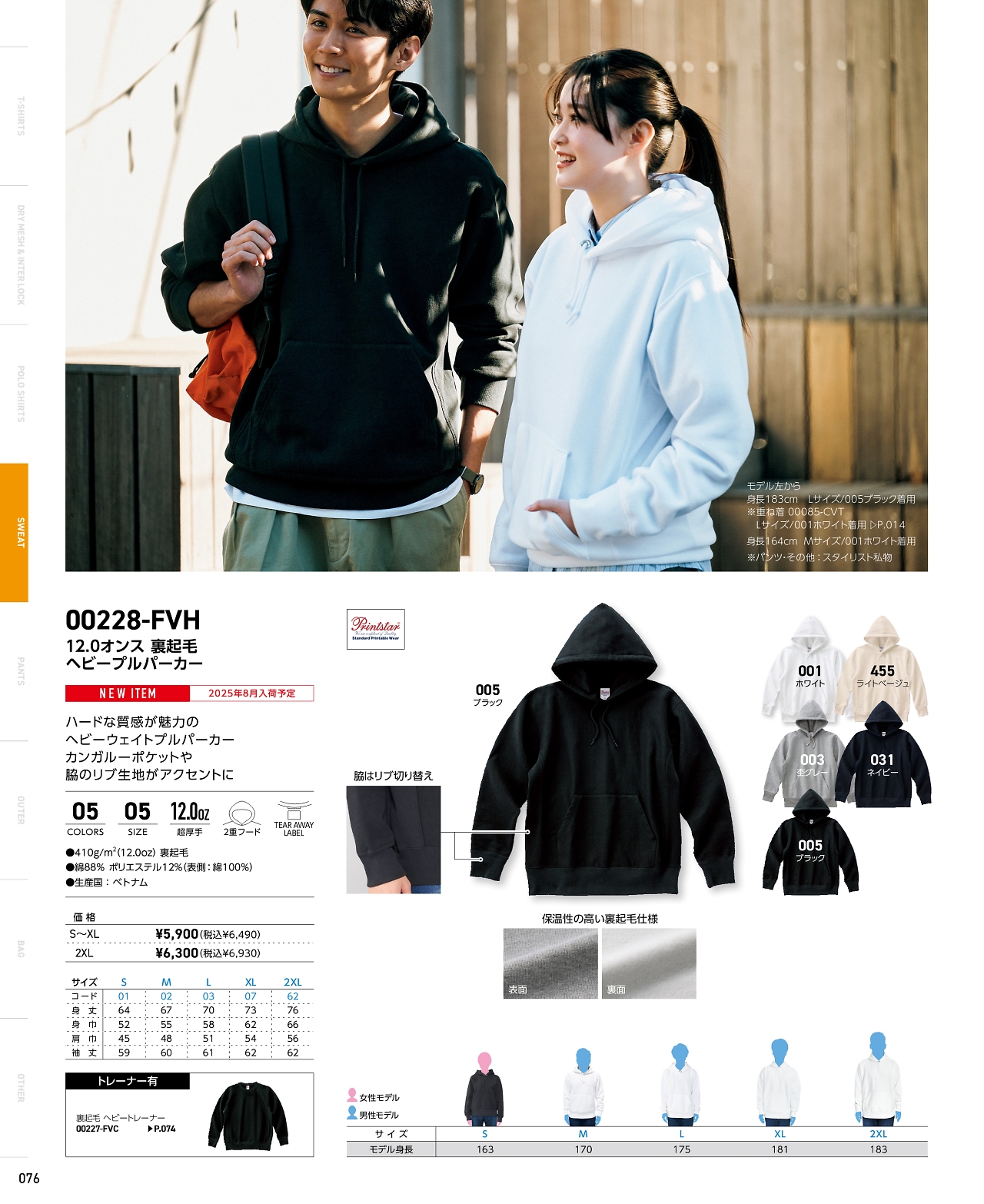 裏起毛ヘビープルパーカー 228FVH-2XL
