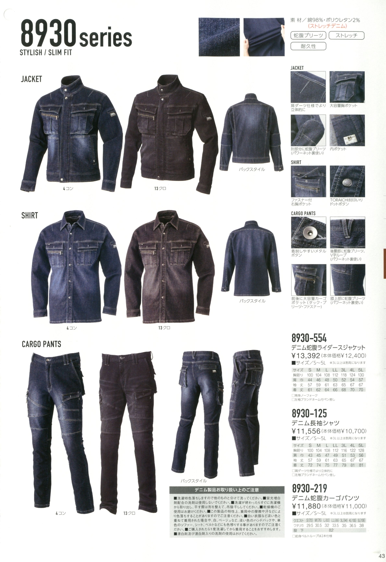 デニム蛇腹カーゴパンツ 8930-219