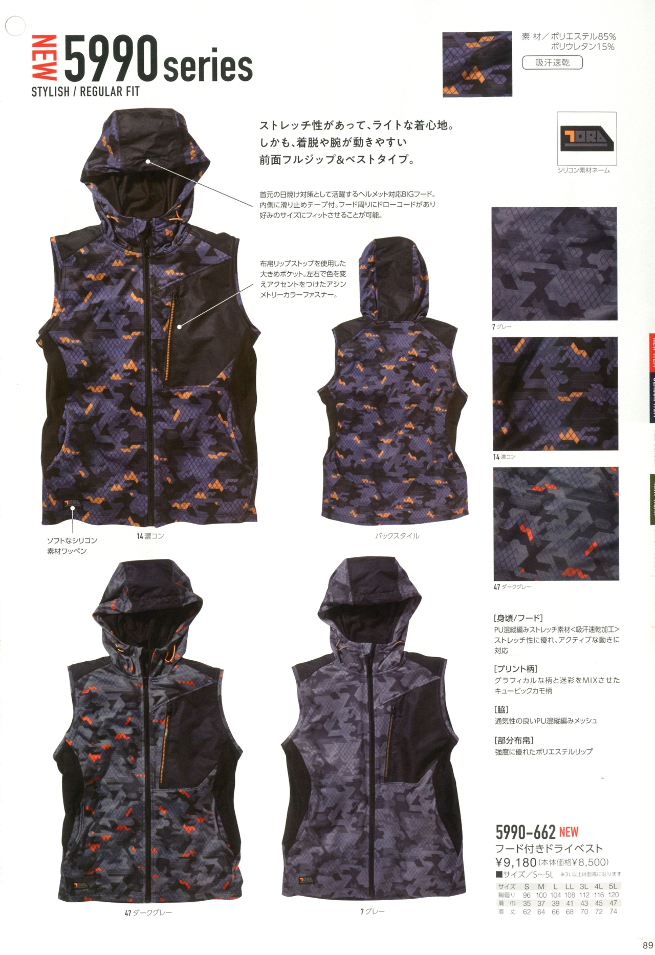 フード付きドライベスト 5990-662