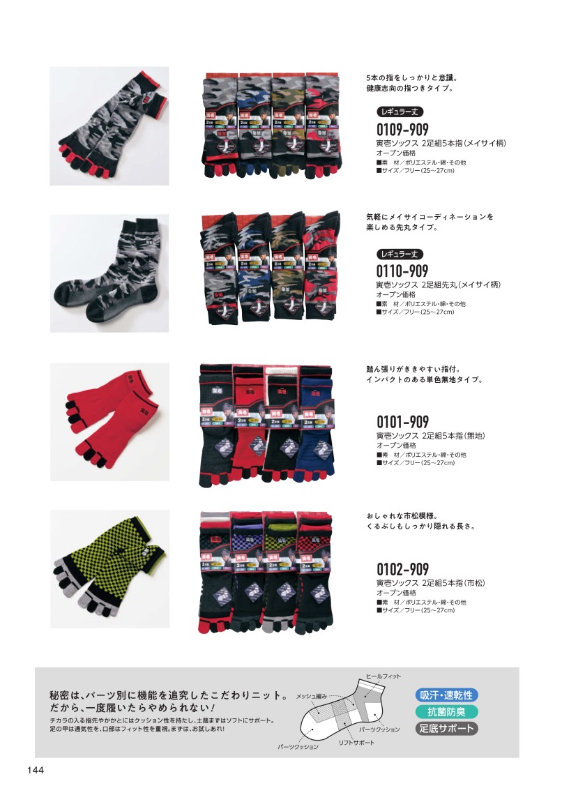 ソックス2足組5本指 0109-909