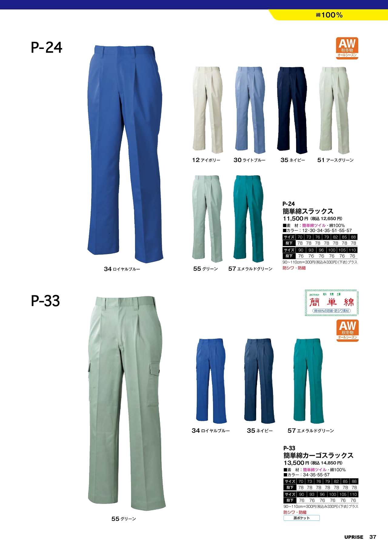 簡単綿ワンタックカーゴスラックス P33