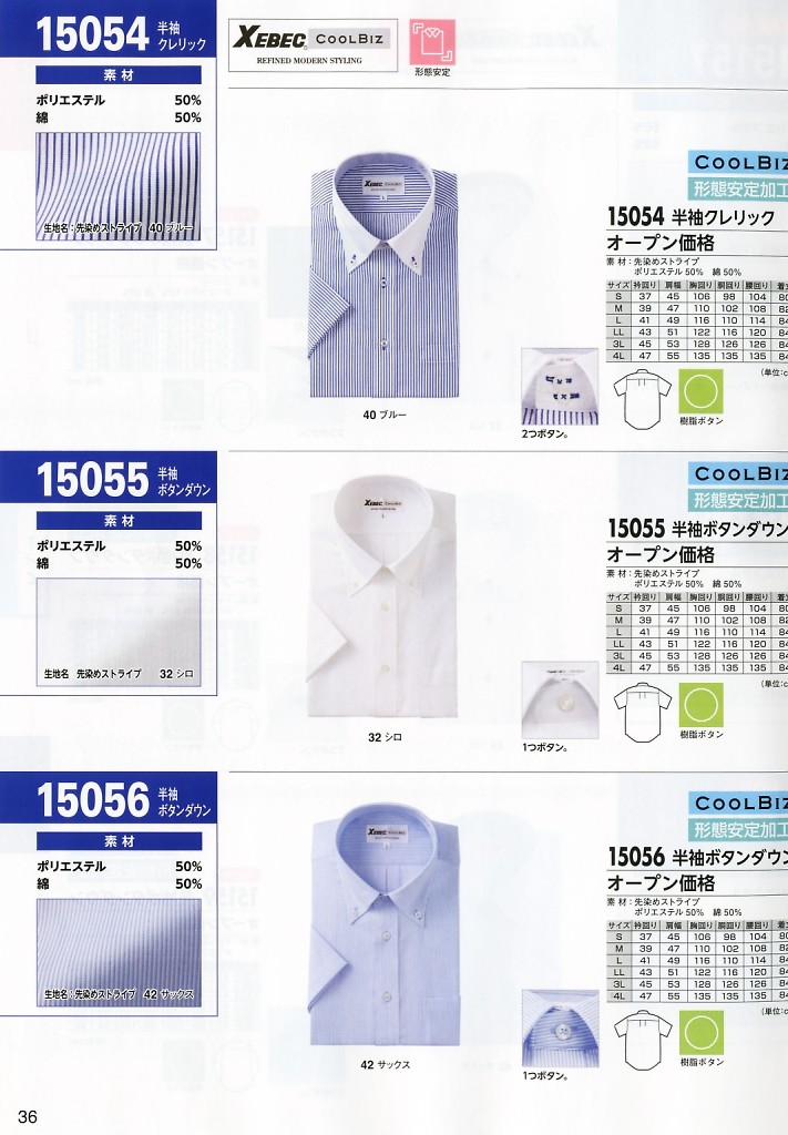 半袖釦ダウンシャツ 15055
