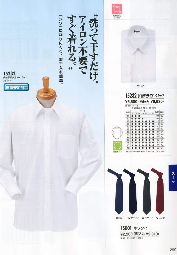 長袖形態安定ドレスシャツ