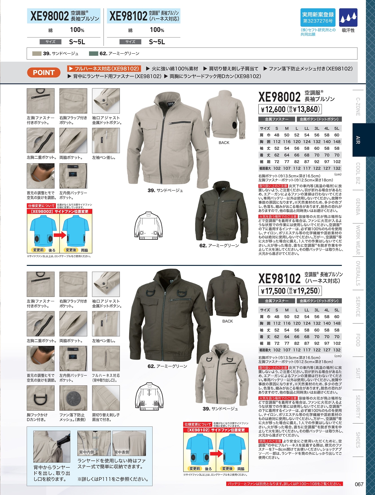 空調服長袖ブルゾン