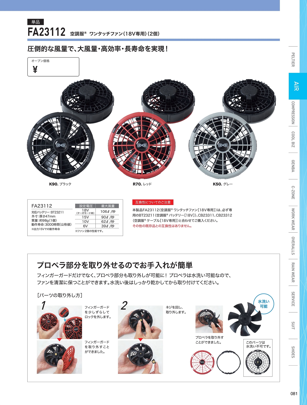 空調服ワンタッチファン