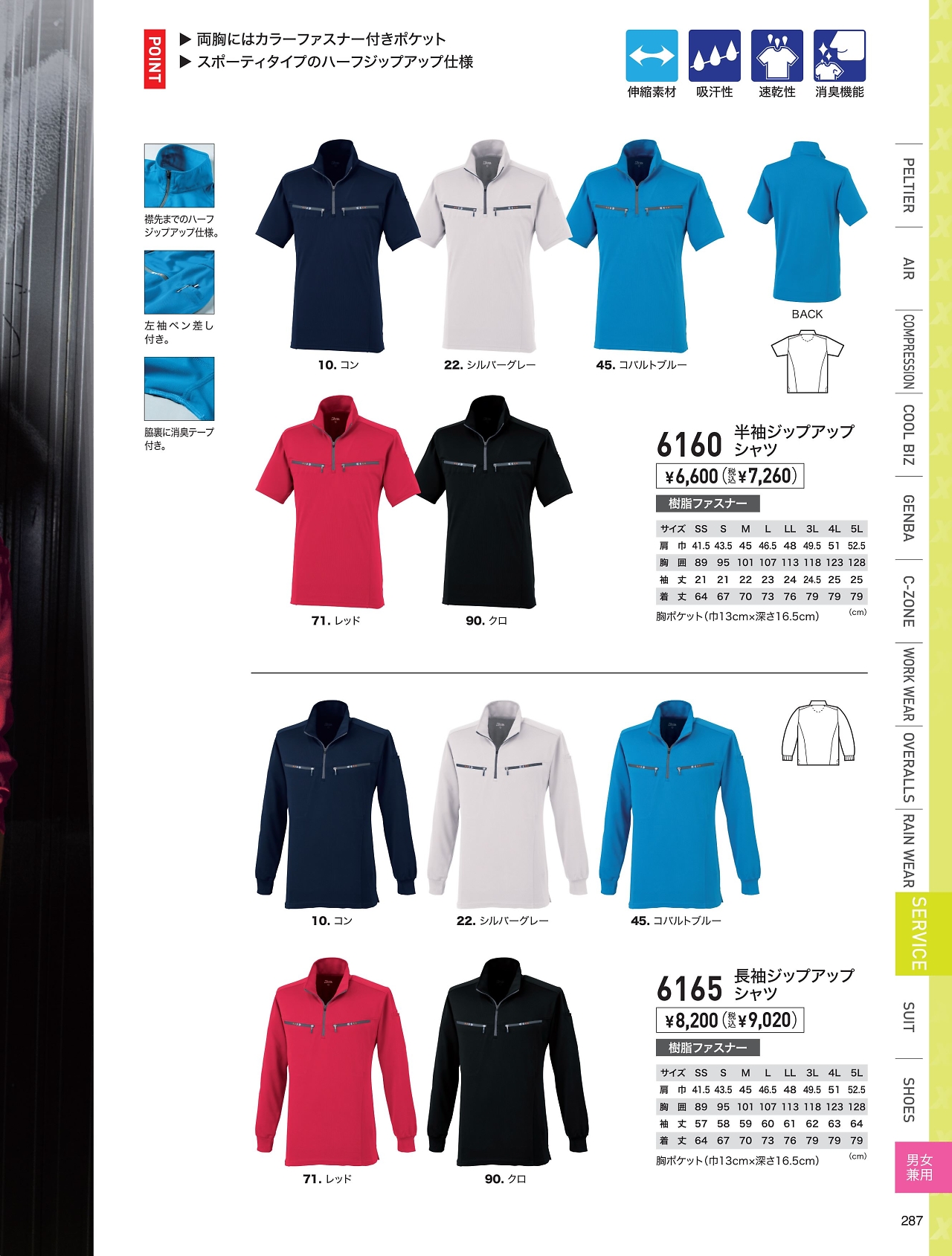 半袖ジップアップシャツ 6160