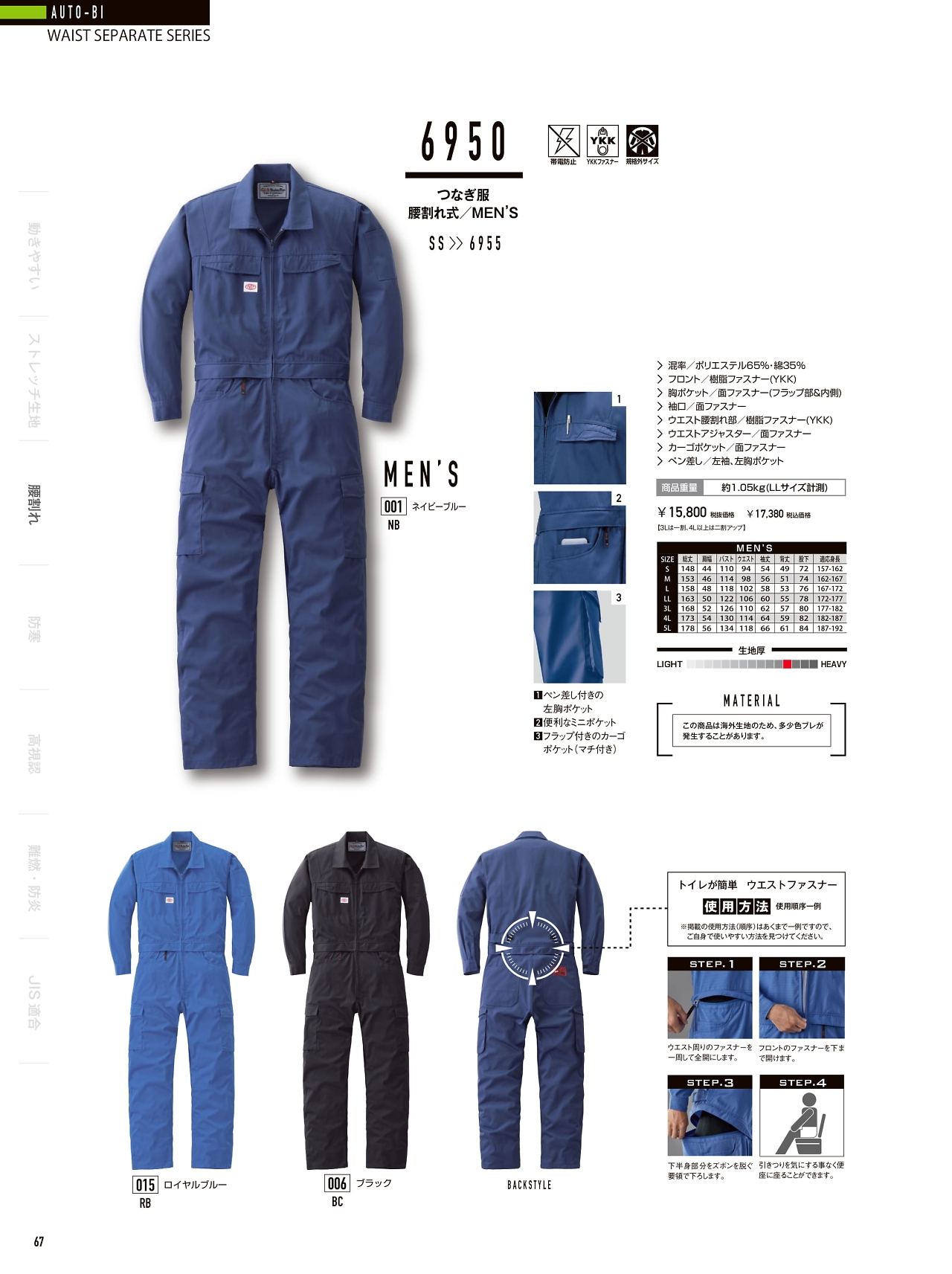 腰割れ式ツナギ服