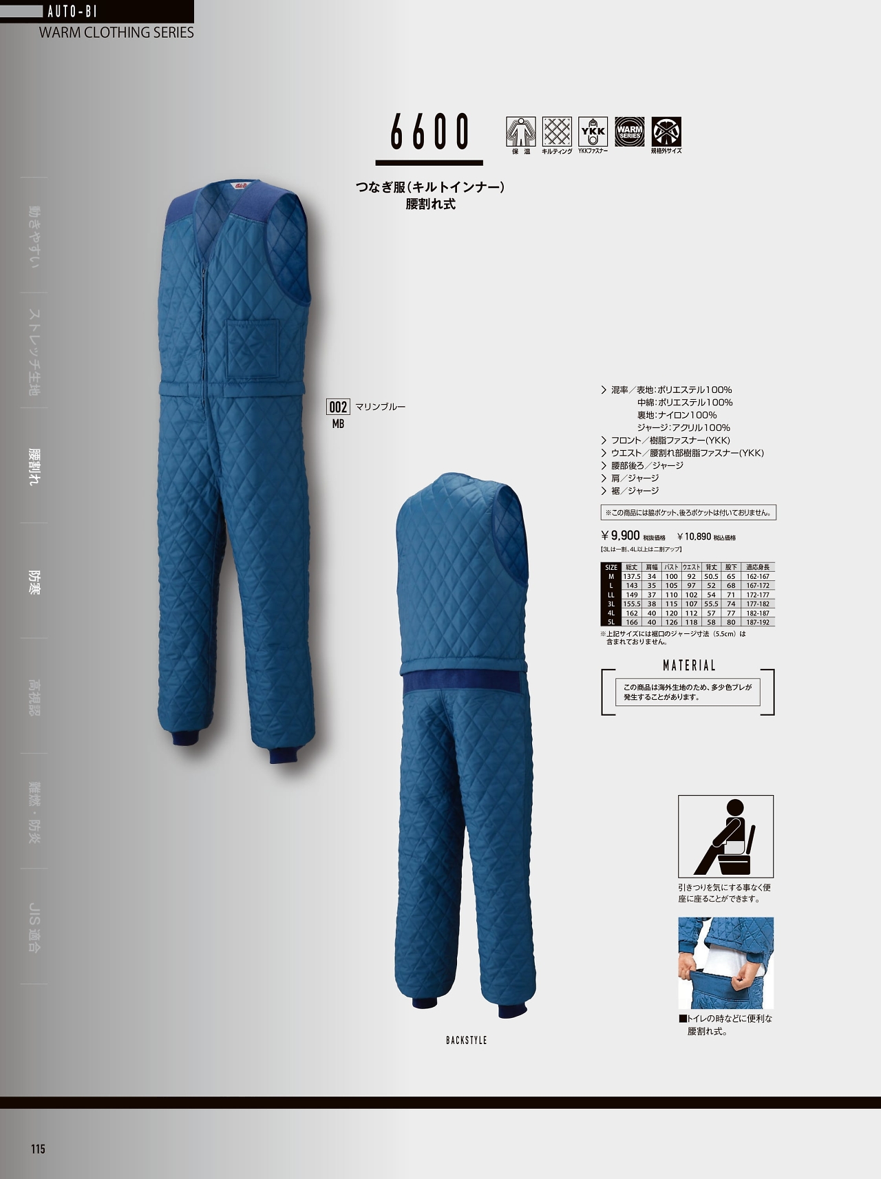 腰割れ式キルトスーツ