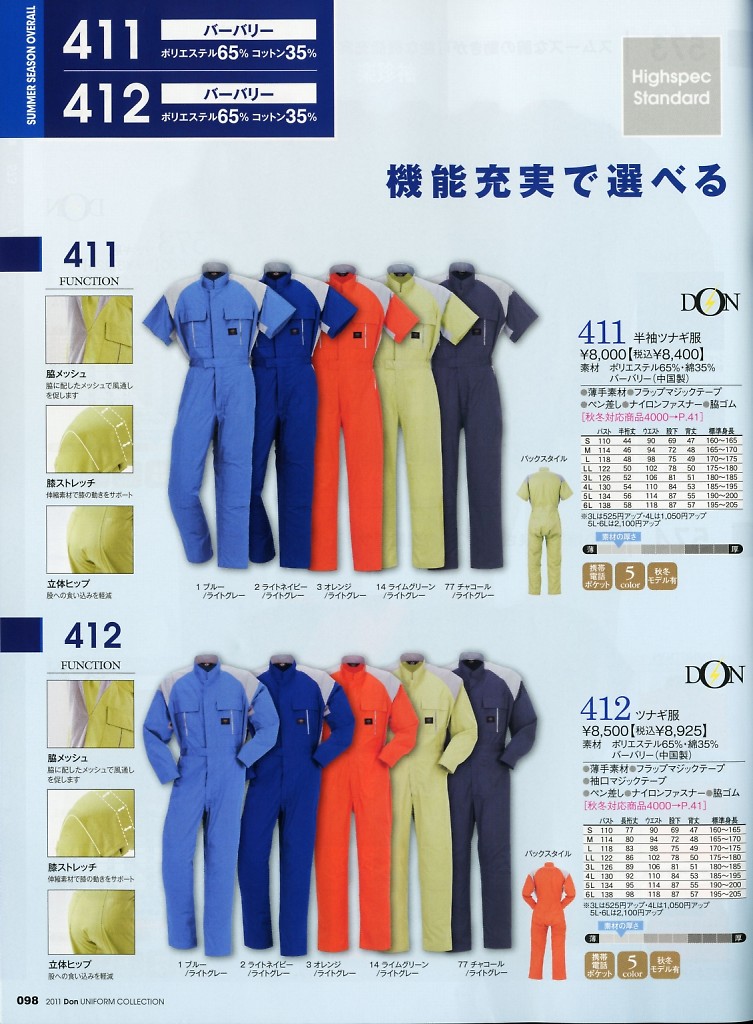 半袖ツナギ服