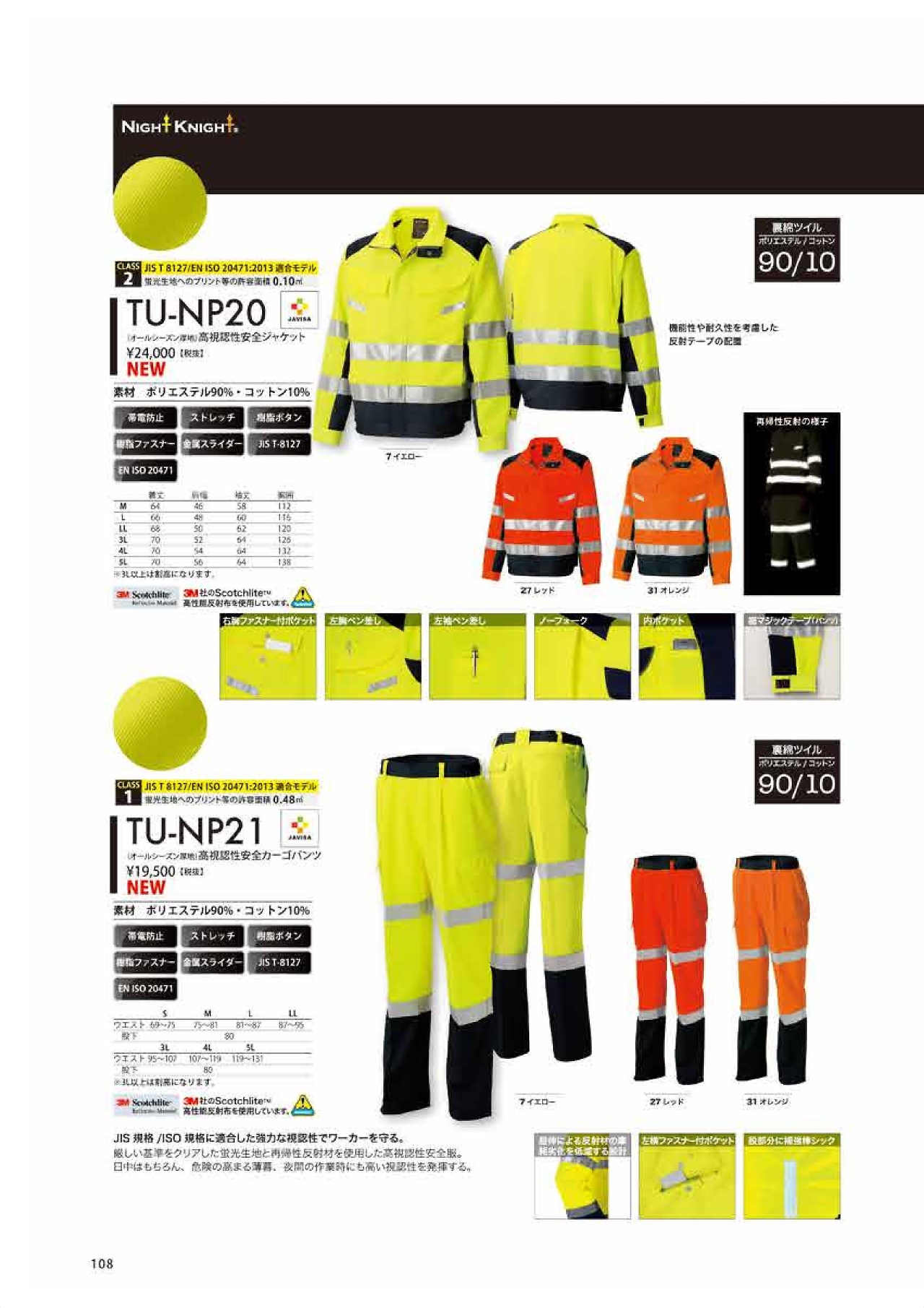 高視認性安全カーゴパンツ TU-NP21