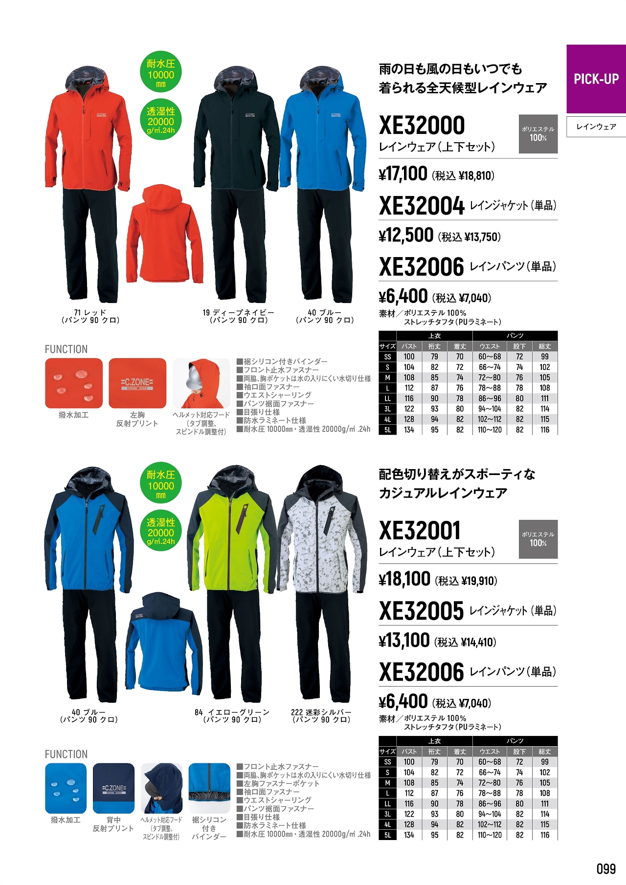 レインウェア上下セット XE32001